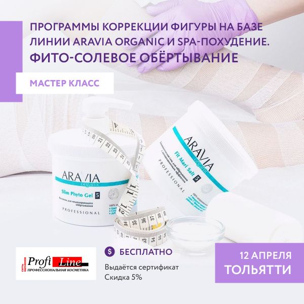 12 апреля, Тольятти. Мастер-класс «Программа коррекции фигуры на базе линии ARAVIA Organic и SPA-похудение. Фито-солевое обёртывание»