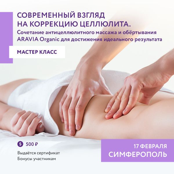 17 февраля, Симферополь. Мастер-класс «Современный взгляд на коррекцию целлюлита. Сочетание антицеллюлитного массажа и обёртывания ARAVIA Organic для достижения идеального результата»