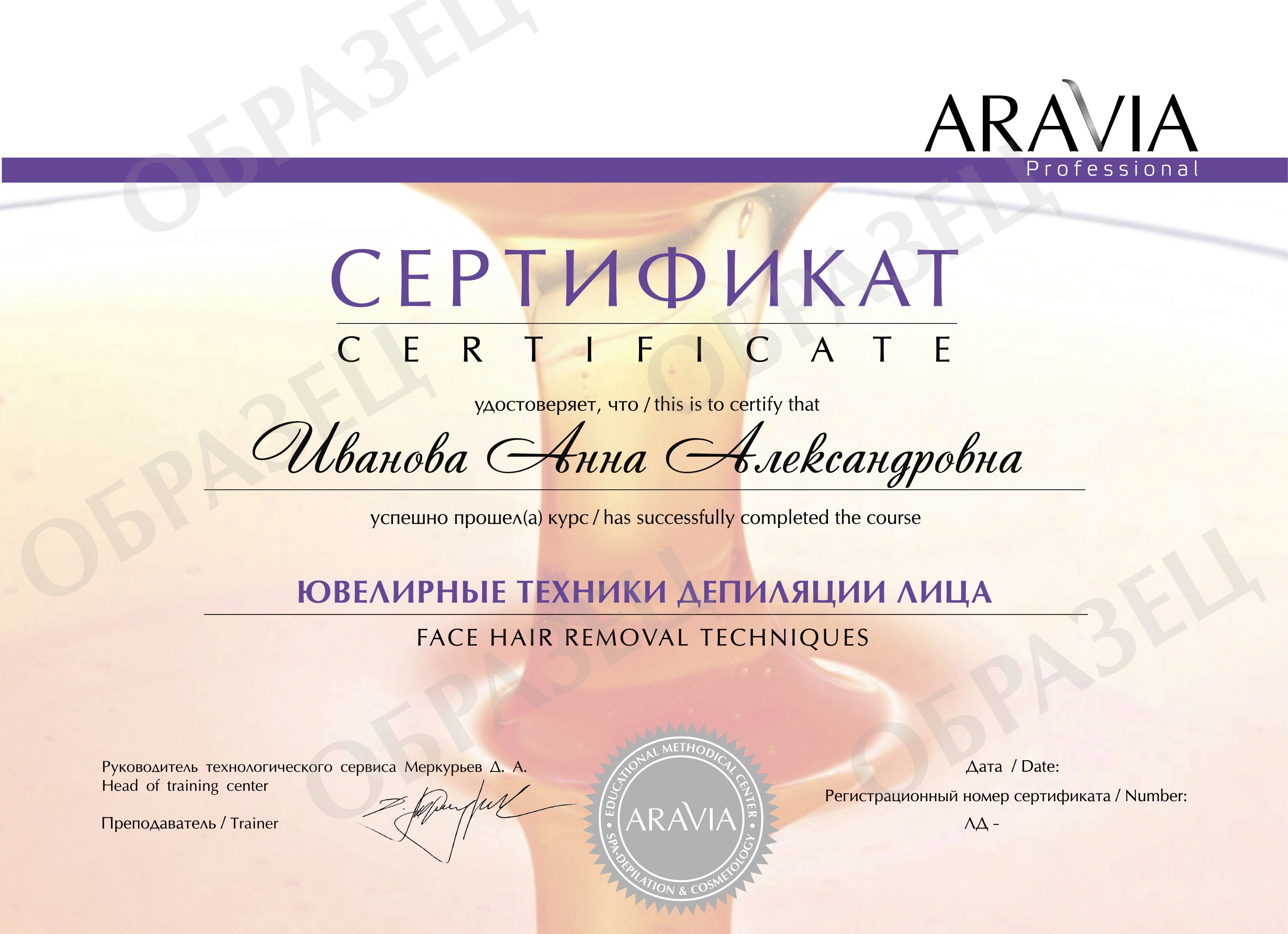 Пройдите три курса повышения уровня «Техники депиляции глубокого бикини», «Скоростные техники депиляции», «Ювелирные техники депиляции лица» и получите золотой сертификат «Эксперт spa-шугаринга».